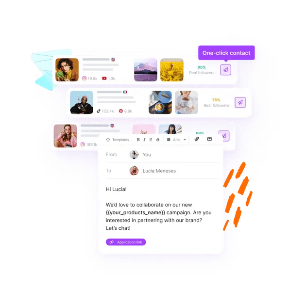 Forge connections with creators through personalized emails, enabled by a simple one-click contact directly from the search results.